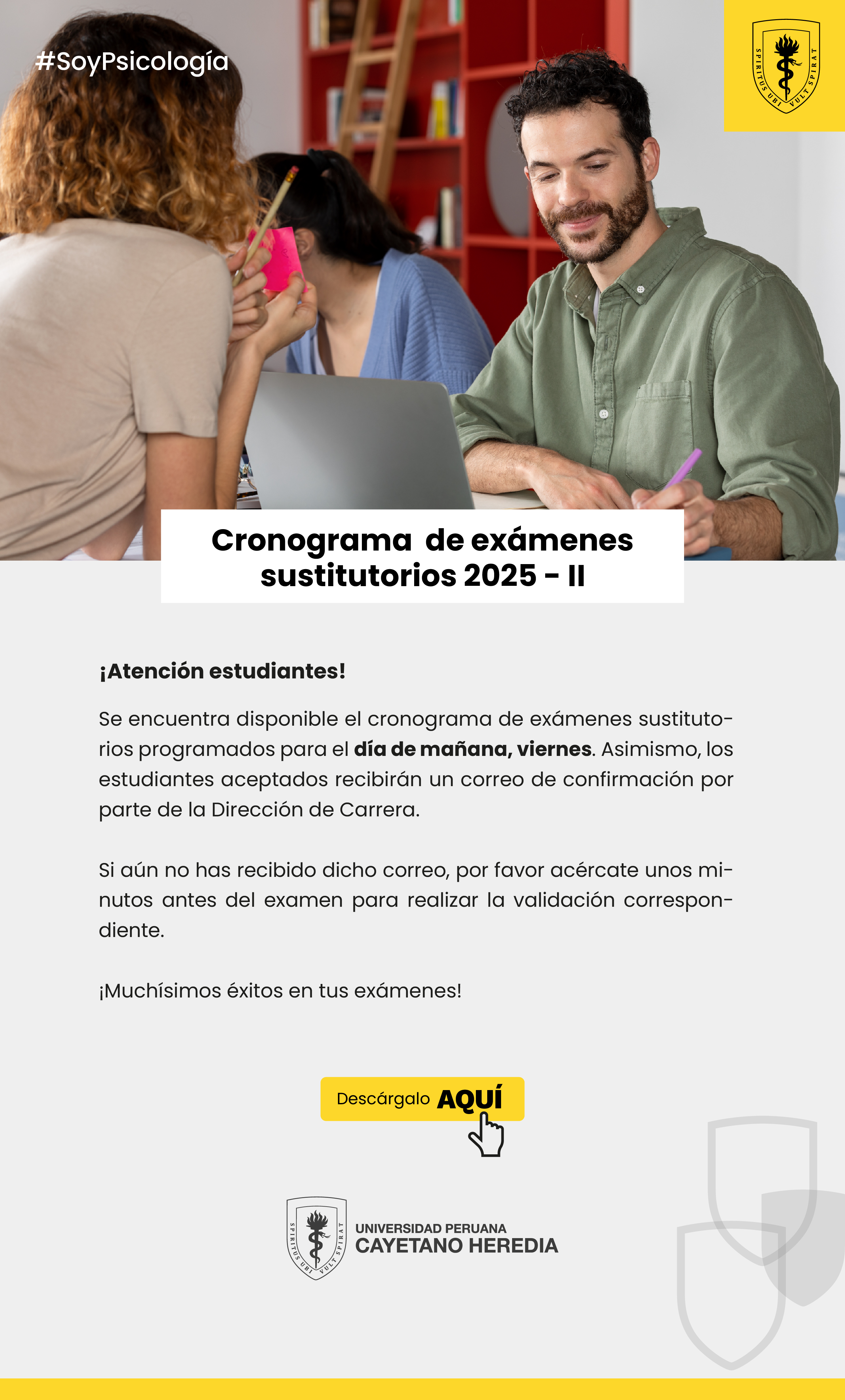 Se comparte con la comunidad universitaria, el rol de exámenes sustitutorios del día viernes 12 de diciembre. Descárgalo aquí