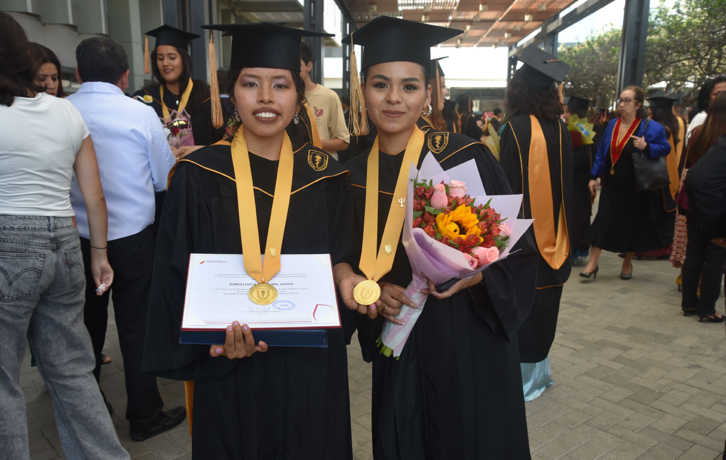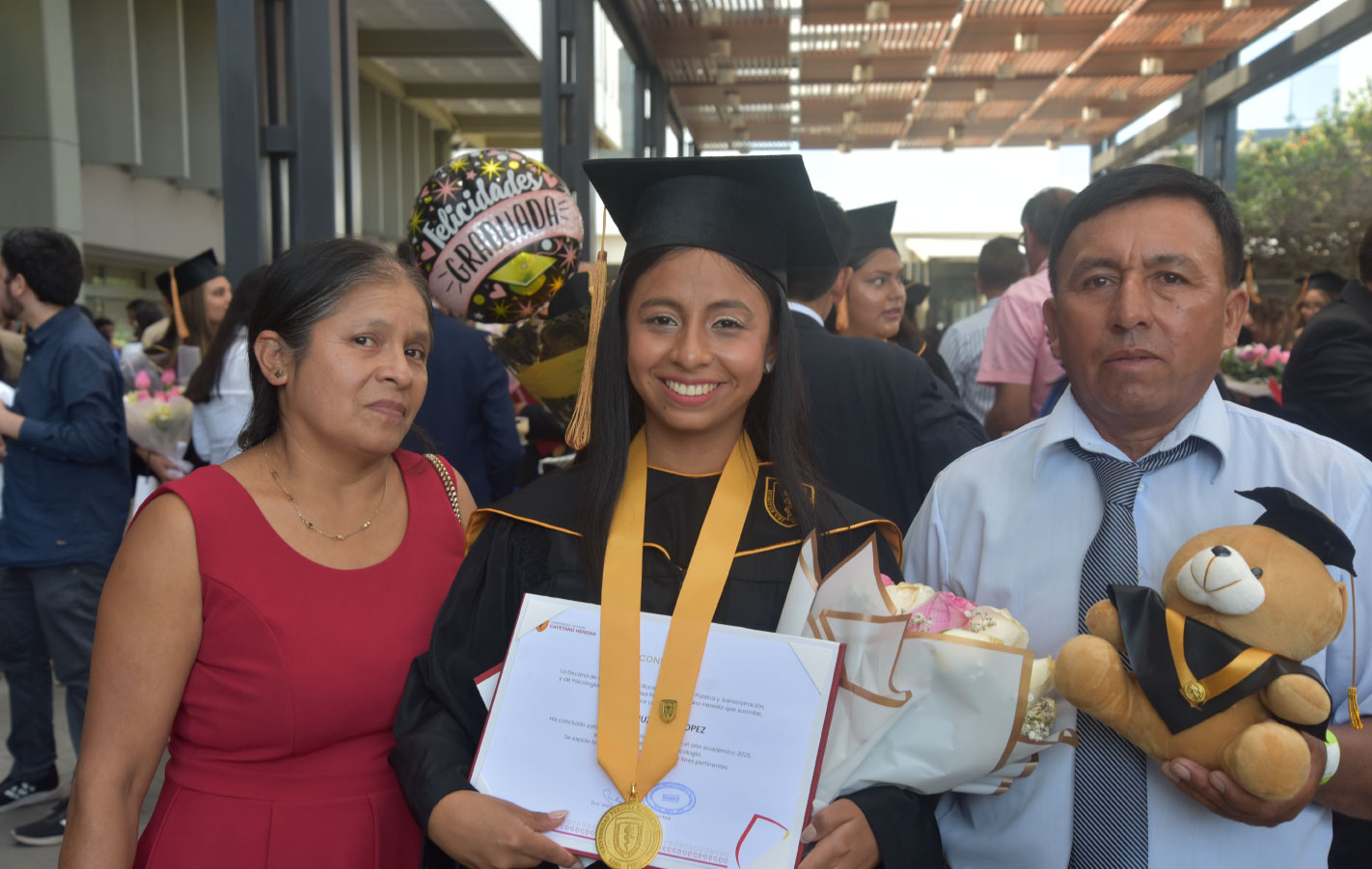 La egresada que ocupó el primer puesto recibió el reconocimiento de manos del rector, Dr. Enrique Castañeda Saldaña, y fue distinguida con el Premio Contenta, otorgado al mejor estudiante de cada promoción.