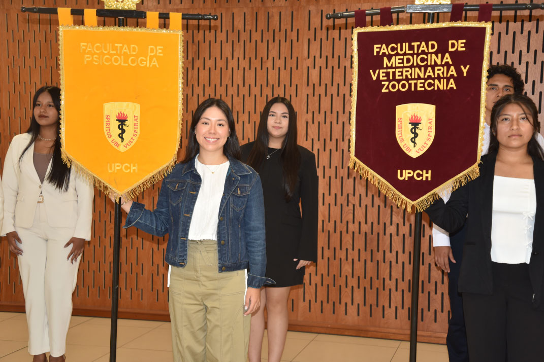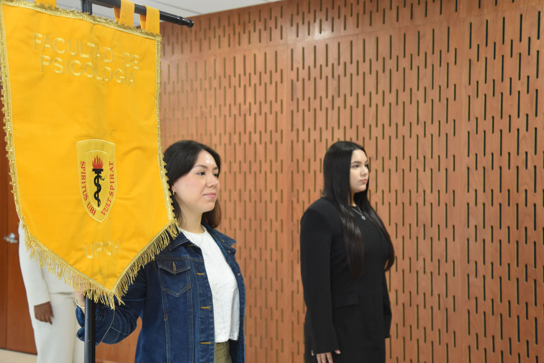 En este importante evento, la carrera de Psicología de la UPCH tuvo una participación destacada. La Srta. Briana Sánchez Acero, ingresante con el primer puesto, recibió el estandarte de la facultad de manos de la Srta. Mariana Abarca Martínez, egresada y primer puesto de la promoción 2025. Este acto simbólico representa la continuidad académica, el compromiso con la excelencia y la formación de futuros profesionales en psicología.