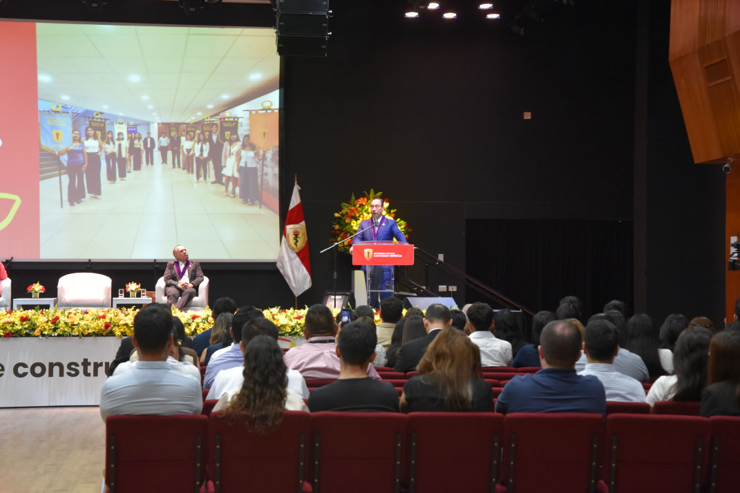 Durante la ceremonia se realizó la tradicional entrega de estandartes, una práctica institucional que fortalece la identidad herediana y promueve valores como liderazgo, ética y responsabilidad desde el inicio de la vida universitaria.