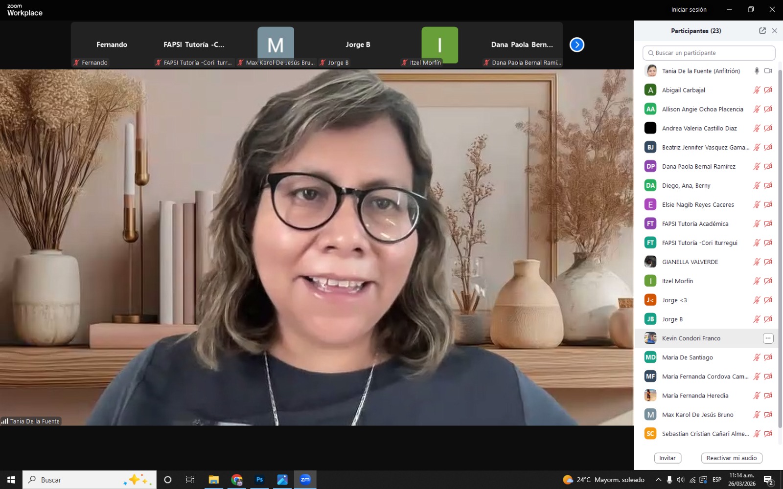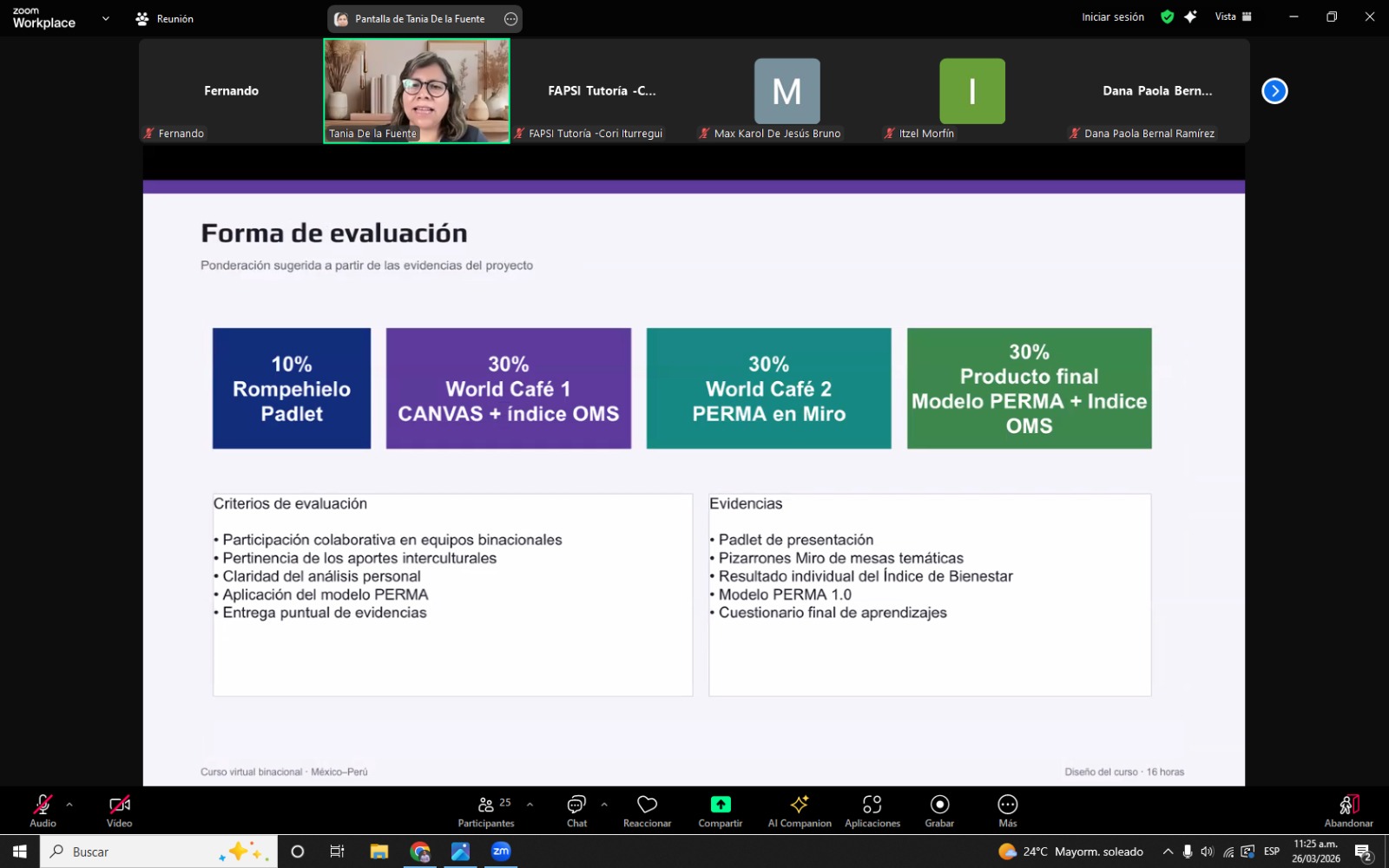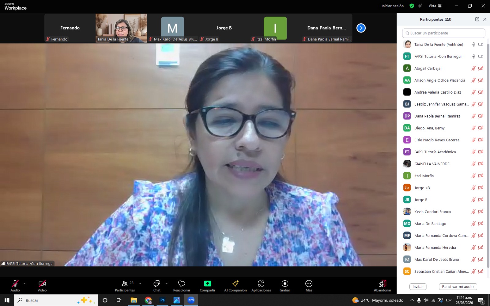 La sesión fue dirigida por las docentes Mag. Tania de la Fuente Chávez y Mag. Cori Iturregui Paucar, quienes abordaron la importancia del bienestar emocional y la salud mental desde enfoques actuales como la psicología positiva, la resiliencia y el florecimiento humano. Estos temas son clave en la formación de futuros profesionales de la carrera de psicología.