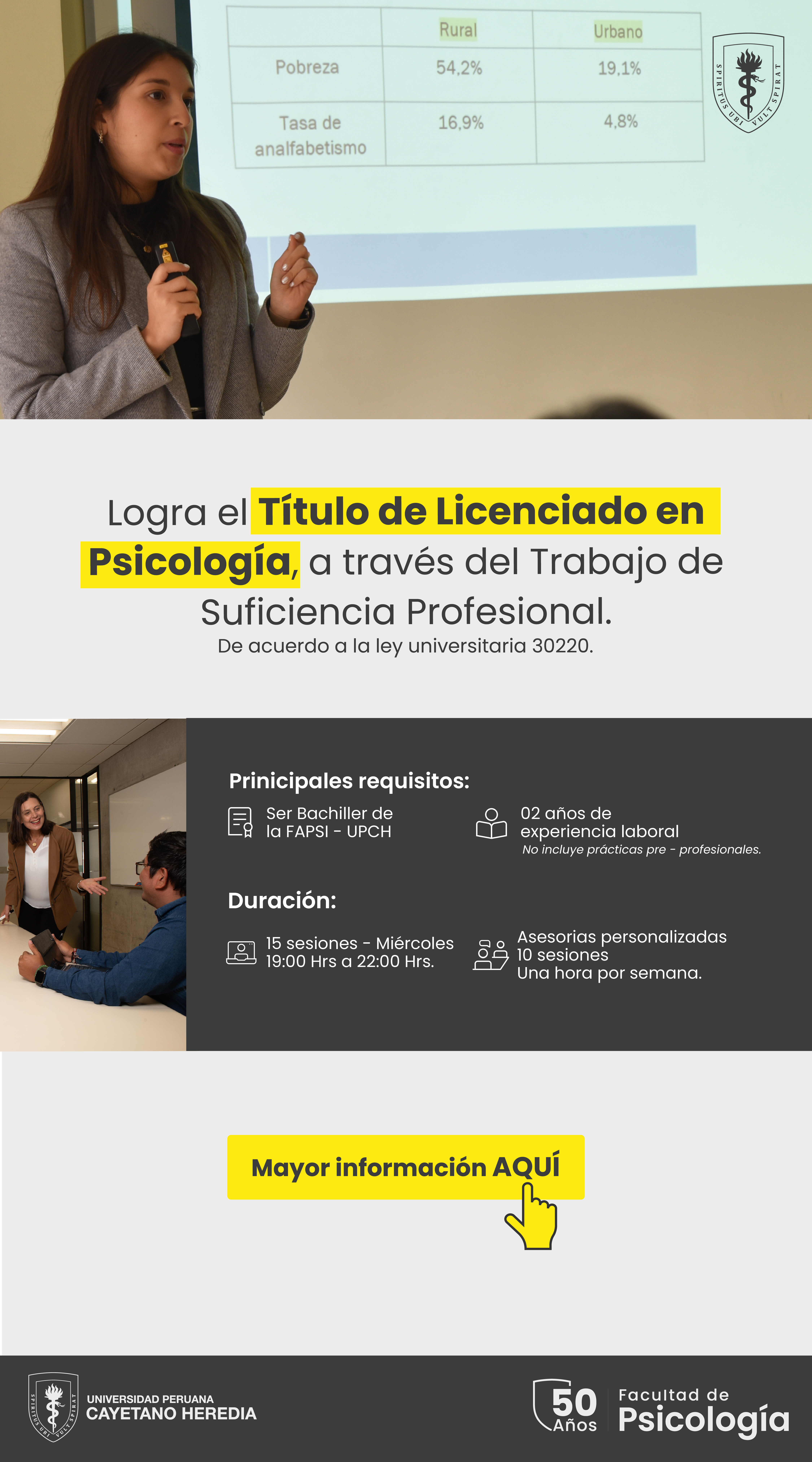 ¡Últimas oportunidades para dar el gran paso! Dirigido a: Bachilleres en Psicología de la UPCH.