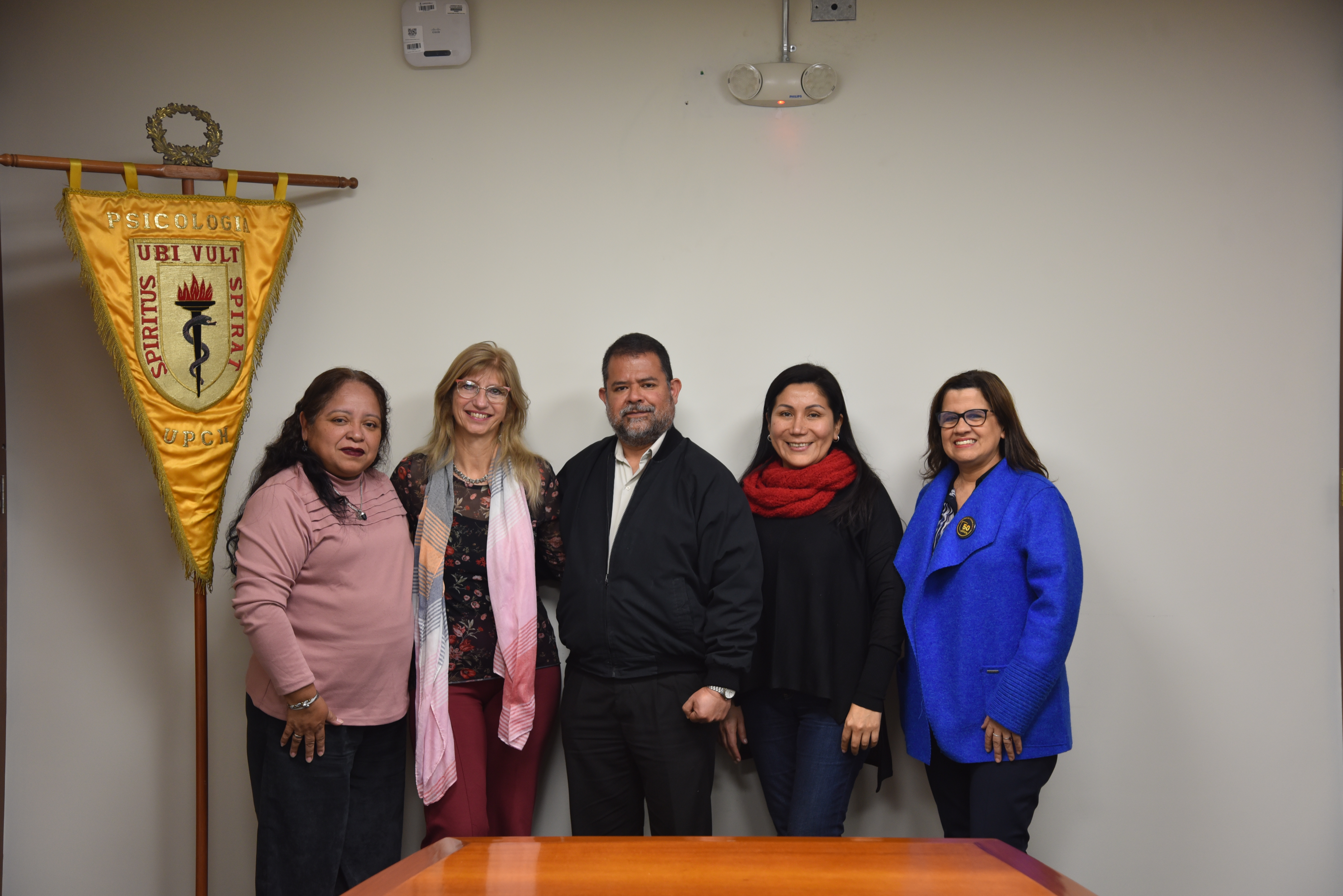 El Dr. Giancarlo Ojeda Mercado, Vicedecano de la facultad, junto a la Mag. Elisa Jefferson Morales, Jefa de Departamento Académico; la Mag. Esther Yaya Castañeda, Directora de la Escuela Profesional de Psicología; y la Mag. Patricia Iparraguirre Baltazar, Jefa de la carrera de Psicología, tuvo el placer de recibir a la destacada académica argentina. Durante la visita, las autoridades de ambas instituciones dialogaron sobre la implementación de acciones educativas conjuntas y el enriquecimiento mutuo a través del intercambio de experiencias.