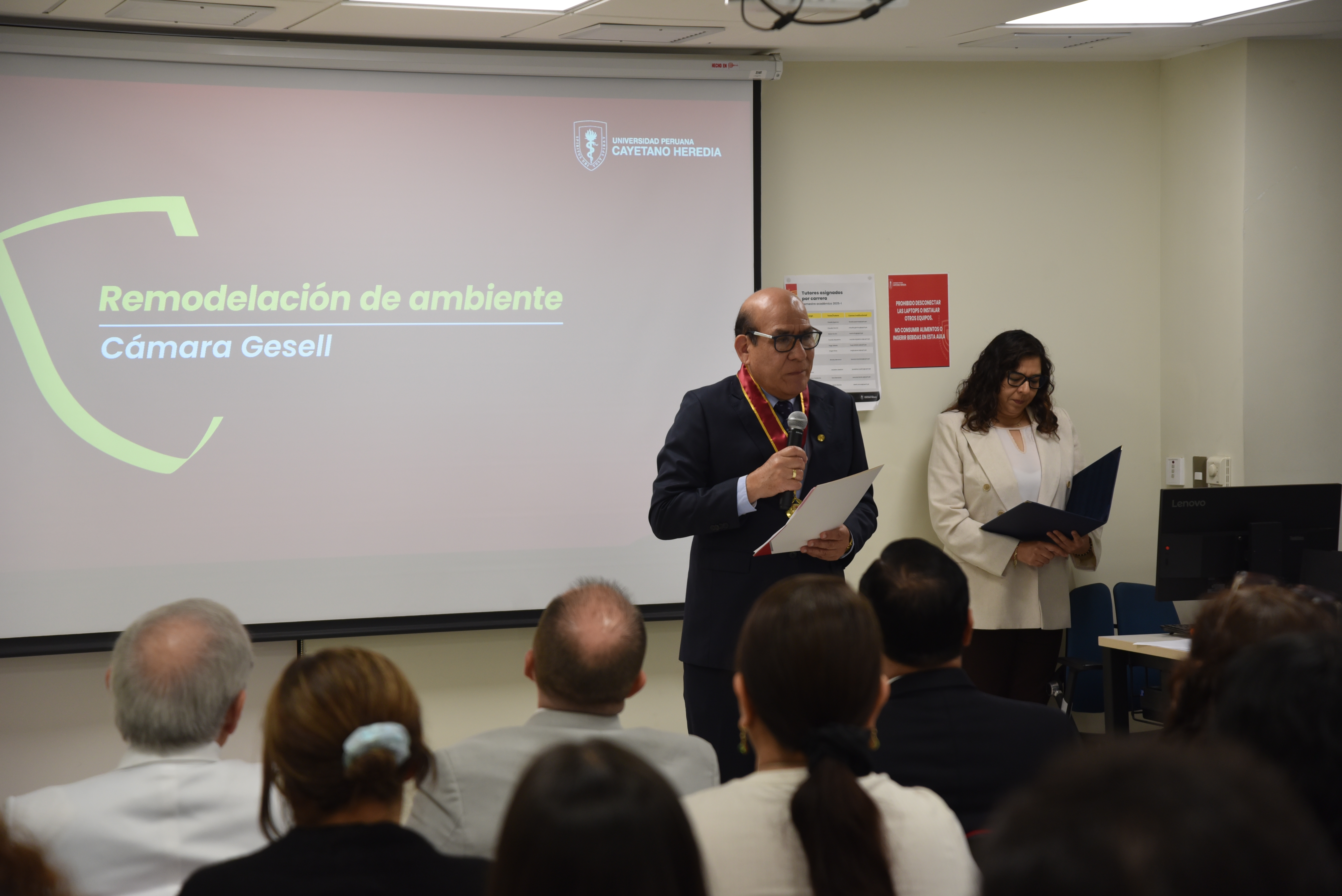 El evento contó con la presencia del Dr. Enrique Castañeda Saldaña, Rector de la Universidad Peruana Cayetano Heredia, así como del Dr. Carlos Cáceres Palacios, Vicerrector de Investigación, junto a otras autoridades universitarias. En representación de nuestra facultad, asistieron el Dr. Giancarlo Ojeda Mercado, Vicedecano; la Mag. Esther Yaya Castañeda, Directora de la Escuela Profesional de Psicología; y la Mag. Elisa Jefferson Morales, Jefa del Departamento Académico.
