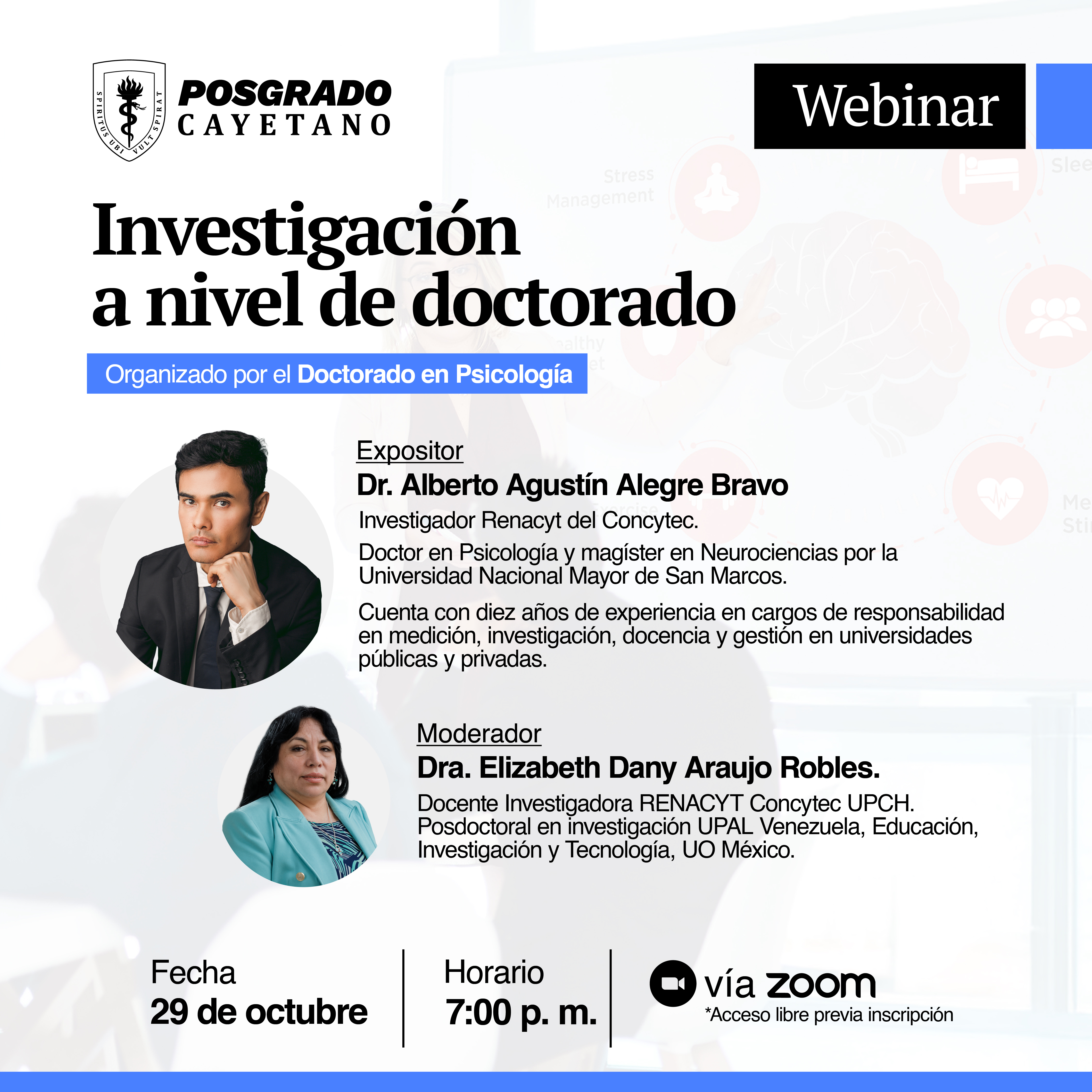 Participa del webinar: «Investigación a nivel de doctorado» a cargo del Dr. Alberto Alegre Bravo, organizado por la coordinación del Programa de Doctorado en Psicología.